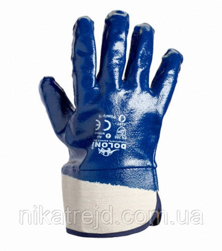 Нітрилові рукавички: мають високий ступінь захисту від шкідливих компонентів. Бавовняна внутрішня частина приємна на рукам, а зовнішнє покриття з нітрилу має оливобензостійкі властивості, а також стійке до похідних вуглецю. Жорсткий манжет запобігає потраплянню речовин всередину рукавички та надійно закріплює її.